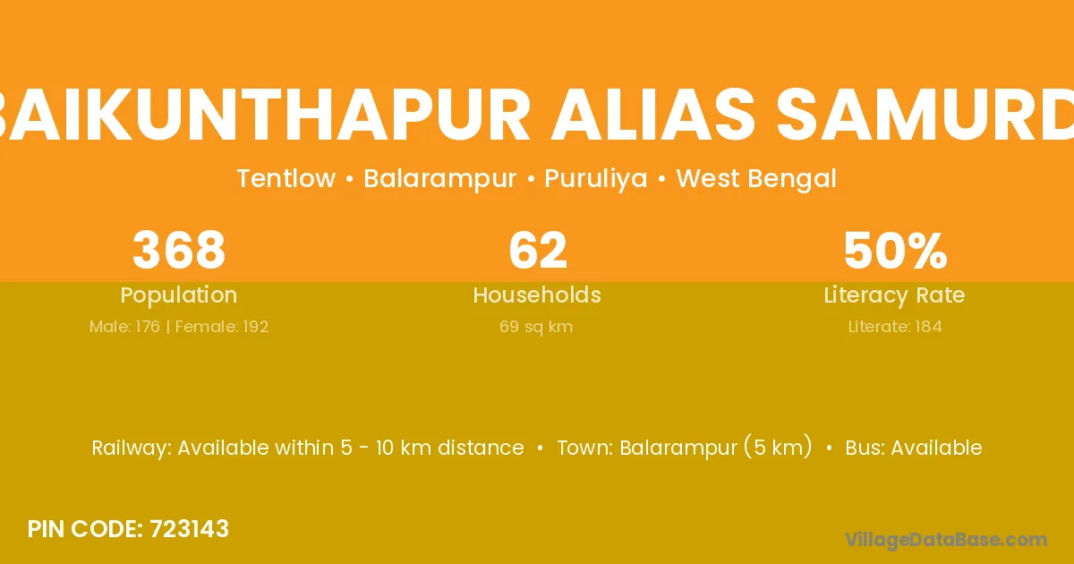 There are approximately 62 households in Baikunthapur Alias Samurdi village.