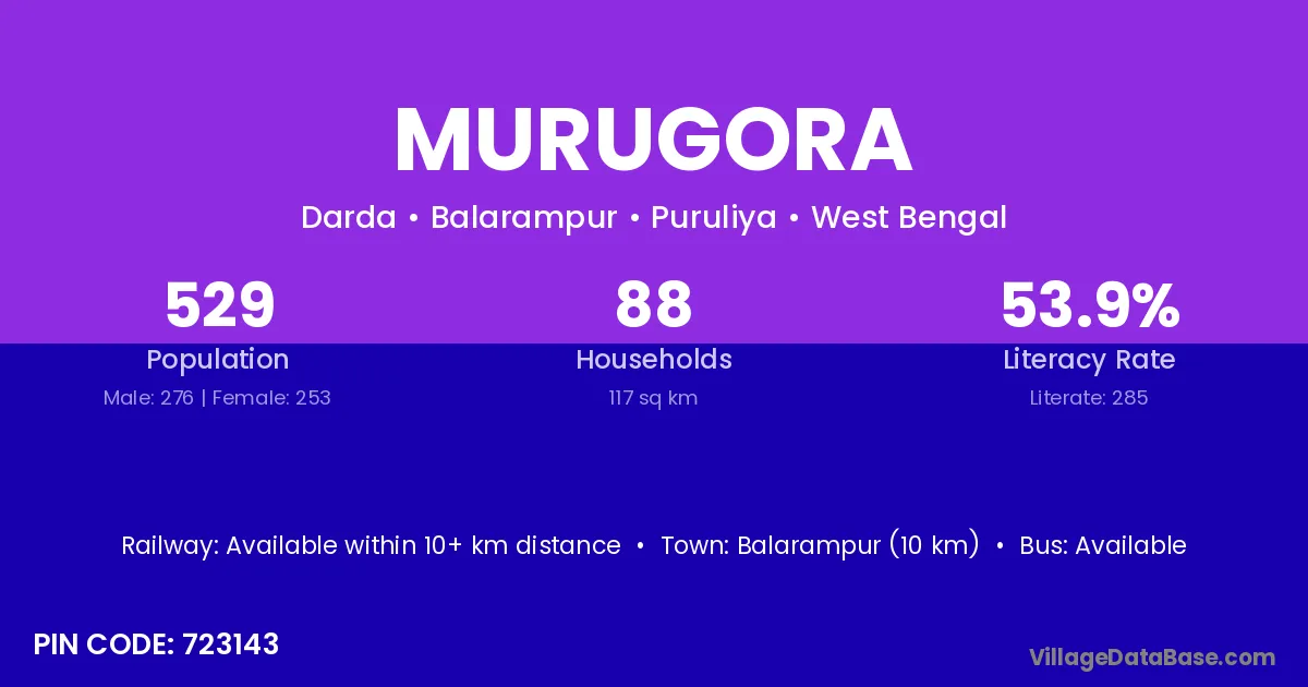 Balarampur (10 km) is the nearest town to Murugora village for major economic activities and is located approximately 10 km away.