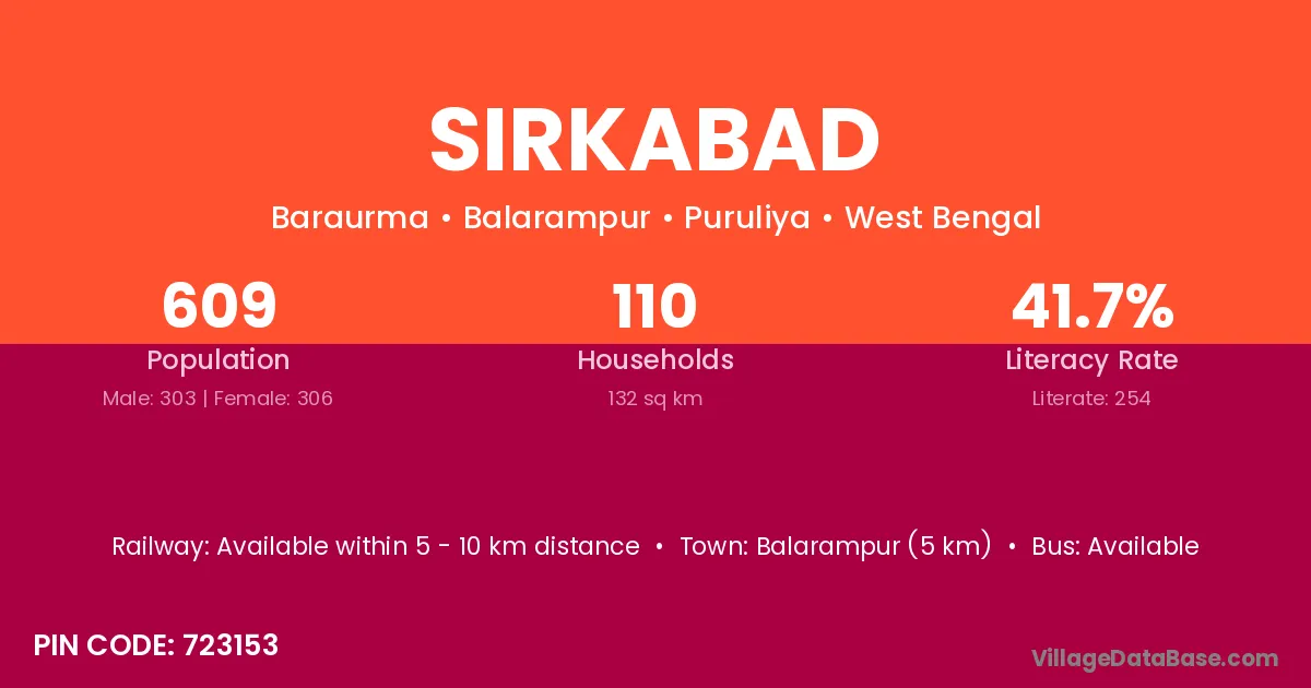 Balarampur (5 km) is the nearest town to Sirkabad village for major economic activities and is located approximately 5 km away.
