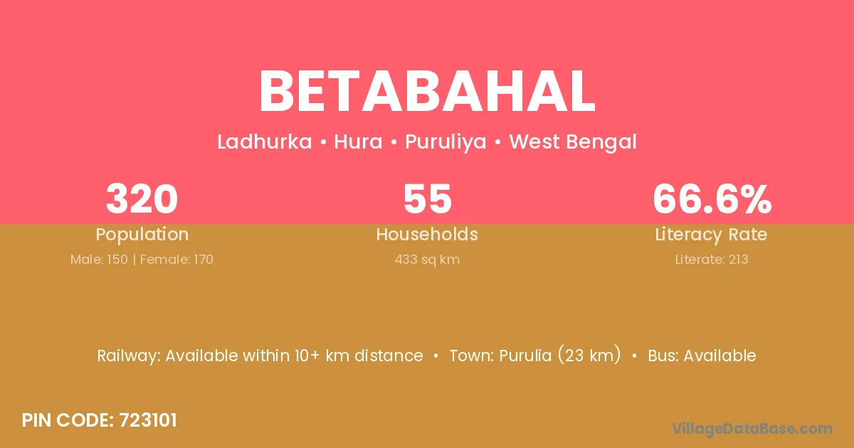 Purulia (23 km) is the nearest town to Betabahal village for major economic activities and is located approximately 23 km away.