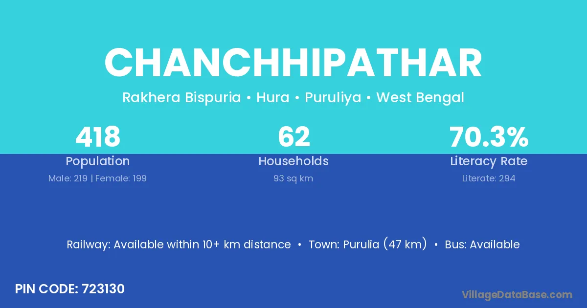 Purulia (47 km) is the nearest town to Chanchhipathar village for major economic activities and is located approximately 47 km away.