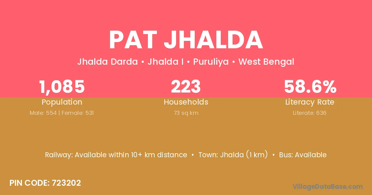 Pat Jhalda village is located in the Jhalda I Subdivision of the Puruliya district in West Bengal.