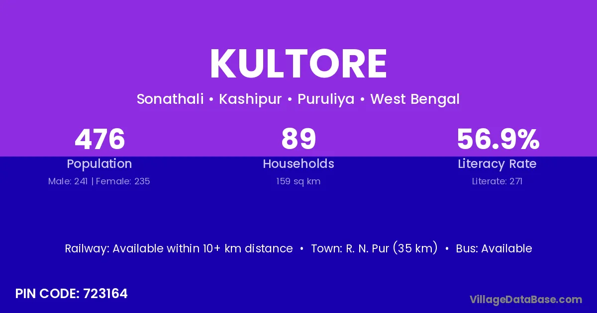 R. N. Pur (35 km) is the nearest town to Kultore village for major economic activities and is located approximately 35 km away.