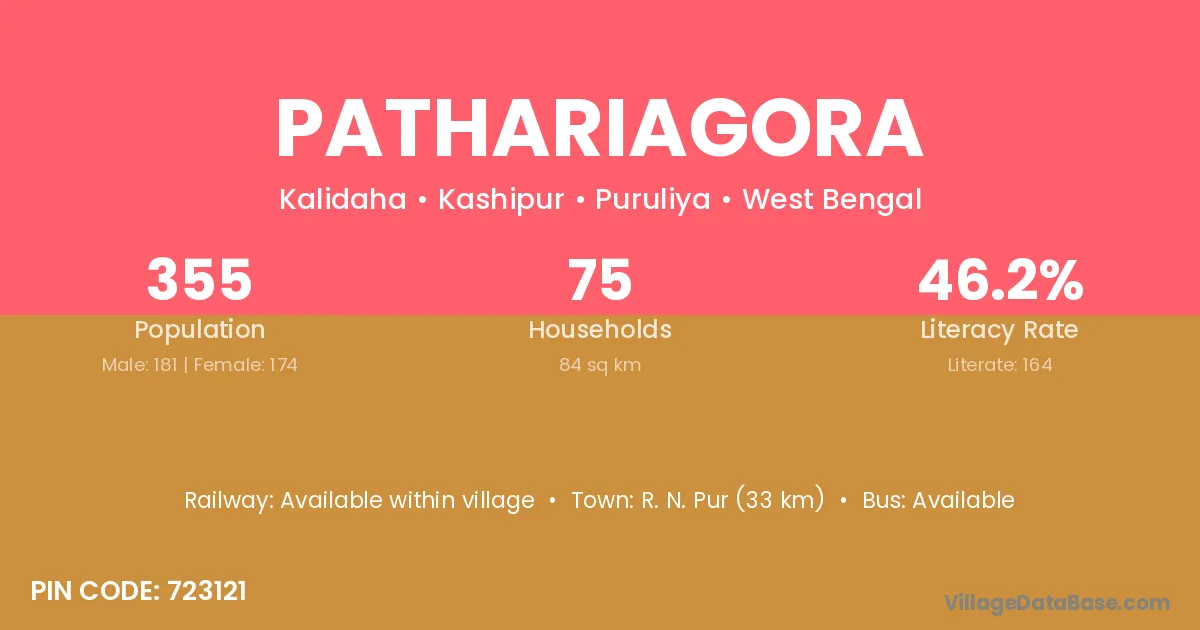 R. N. Pur (33 km) is the nearest town to Pathariagora village for major economic activities and is located approximately 33 km away.