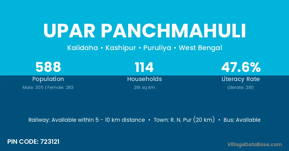 Upar Panchmahuli village is located in the Kashipur Subdivision of the Puruliya district in West Bengal .