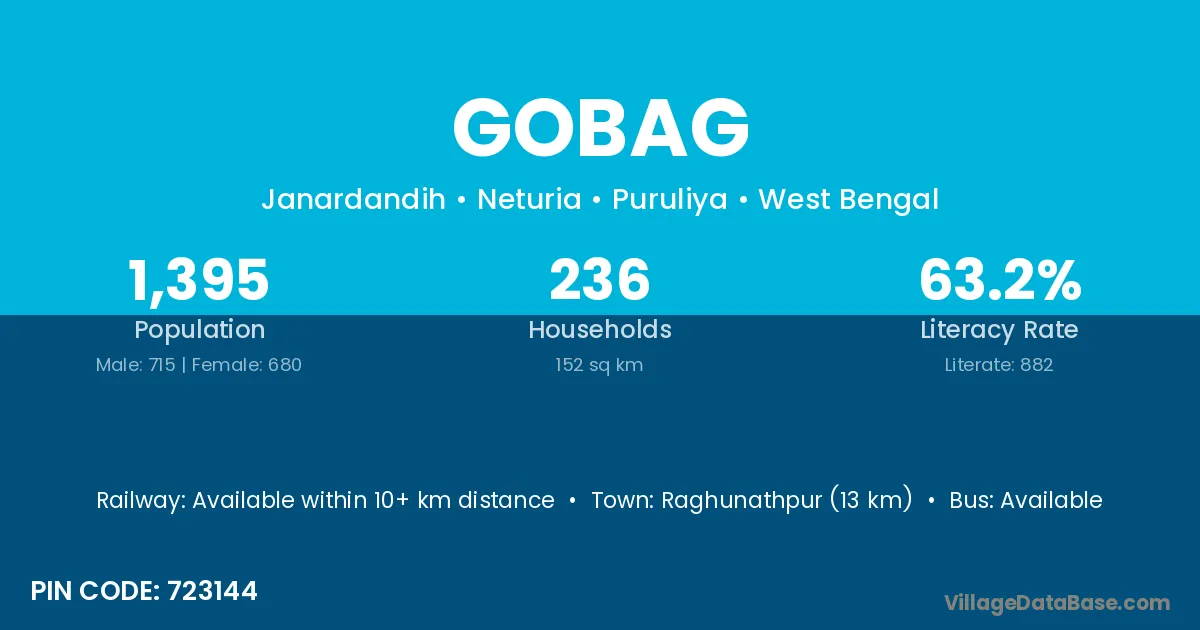 Gobag village is located in the Neturia Subdivision of the Puruliya district in West Bengal.