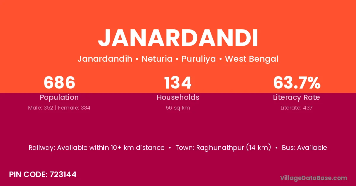 Janardandi village is located in the Neturia Subdivision of the Puruliya district in West Bengal.