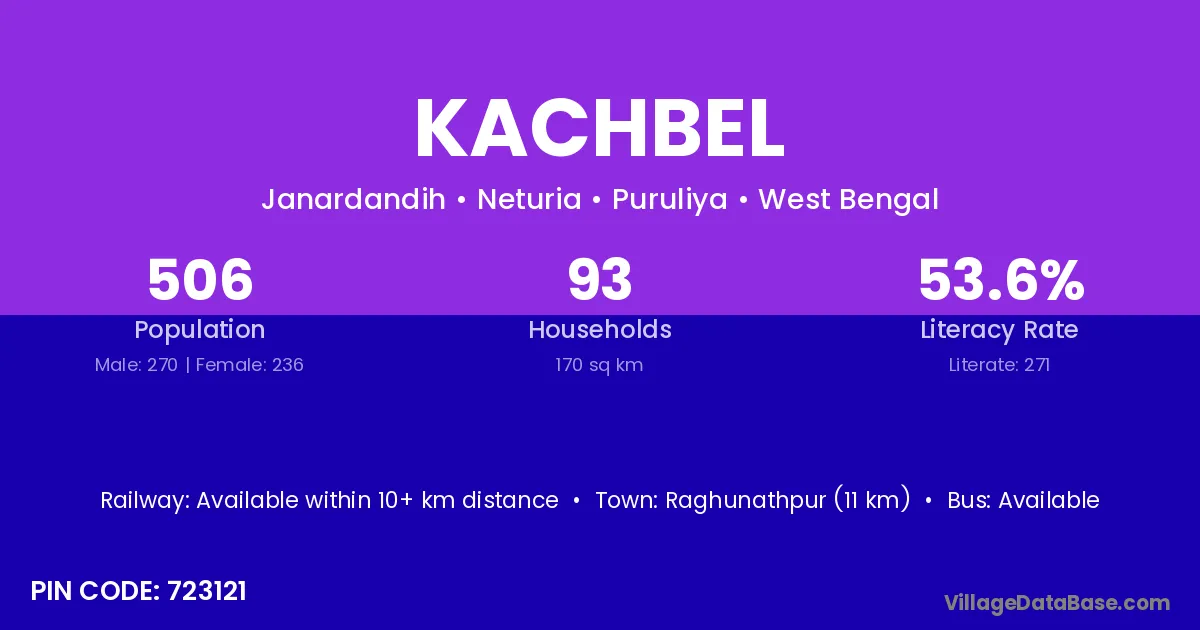 Kachbel village is located in the Neturia Subdivision of the Puruliya district in West Bengal.