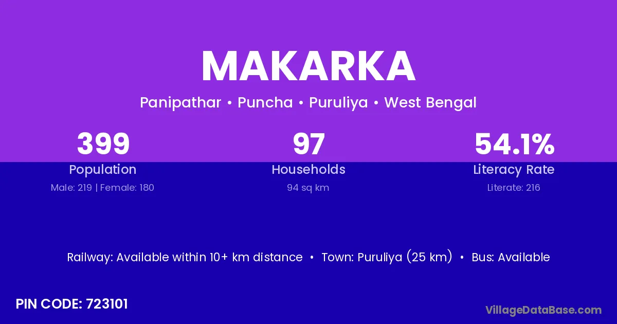 Makarka village is located in the Puncha Subdivision of the Puruliya district in West Bengal.