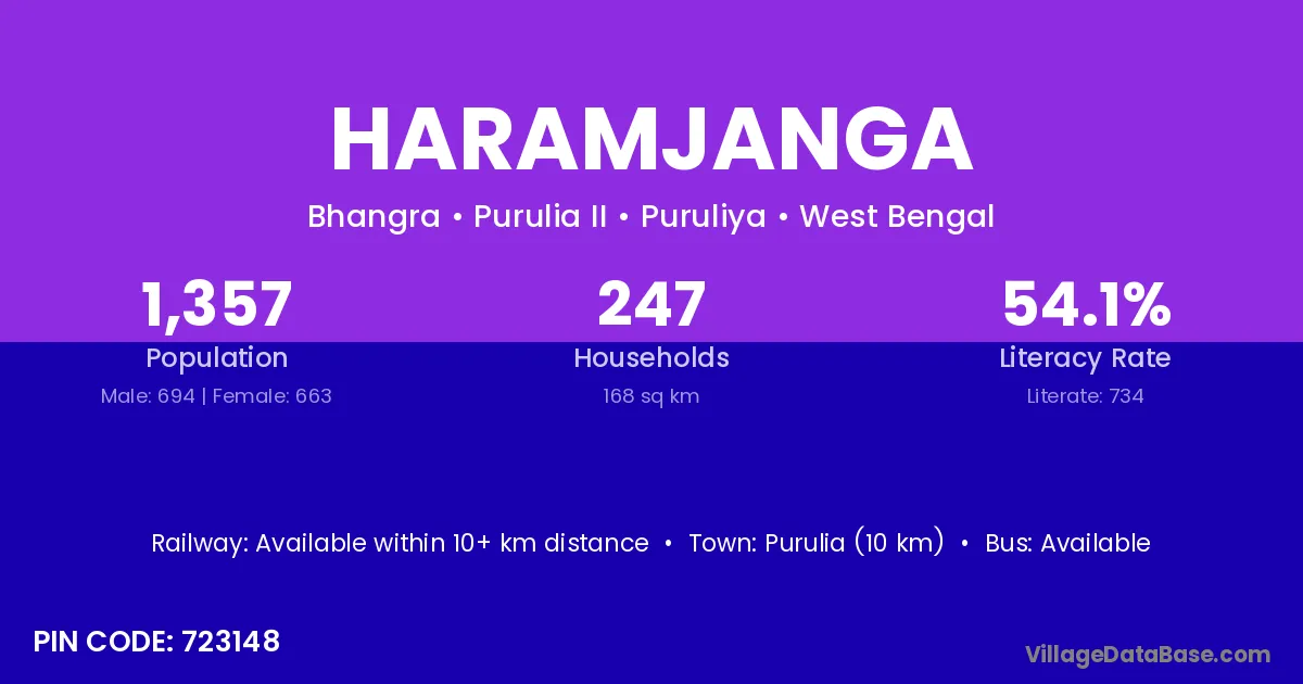 Purulia (10 km) is the nearest town to Haramjanga village for major economic activities and is located approximately 10 km away.