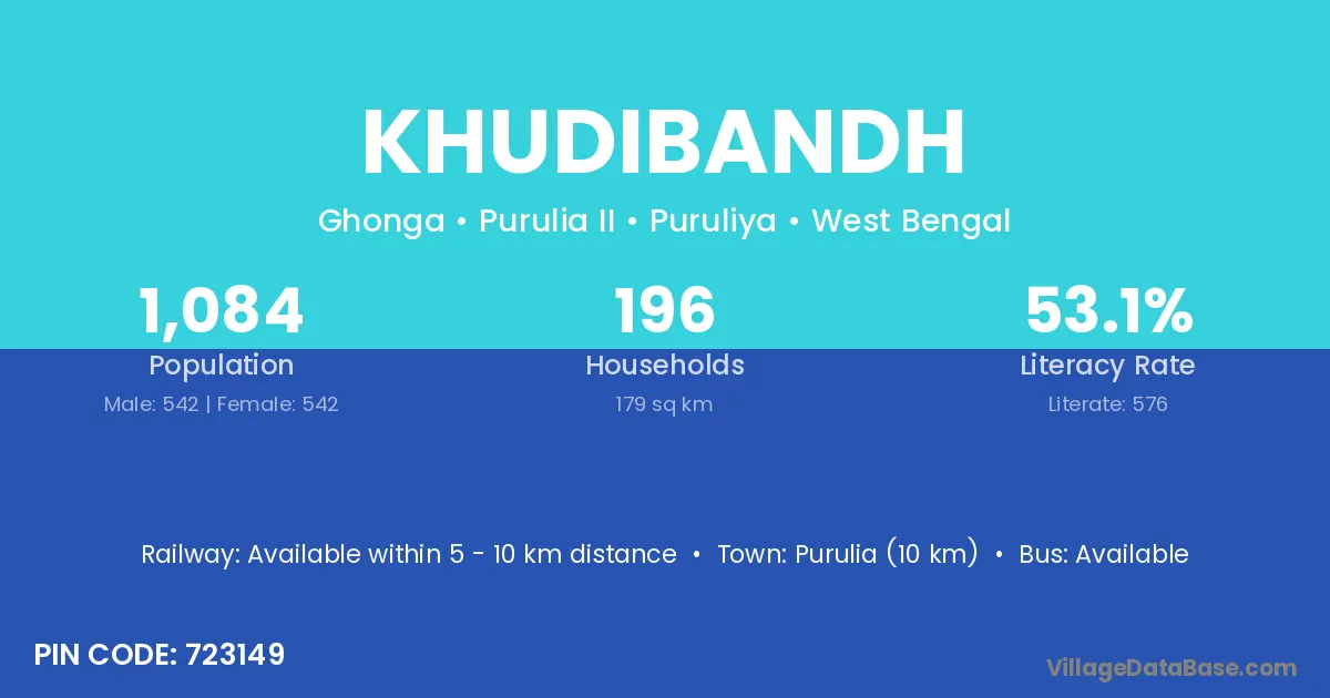 Purulia (10 km) is the nearest town to Khudibandh village for major economic activities and is located approximately 10 km away.