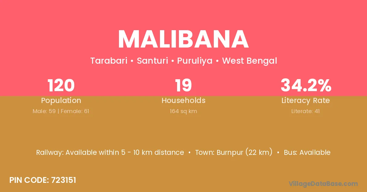 Burnpur (22 km) is the nearest town to Malibana village for major economic activities and is located approximately 22 km away.