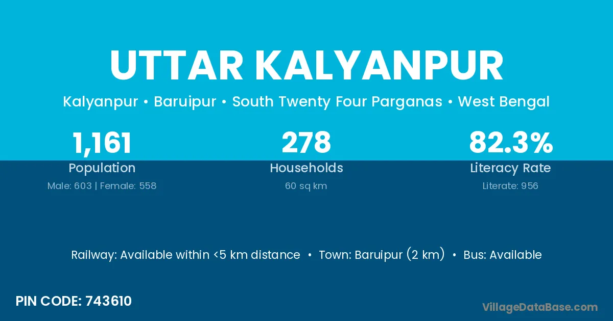 Baruipur (2 km) is the nearest town to Uttar Kalyanpur village for major economic activities and is located approximately 2 km away.