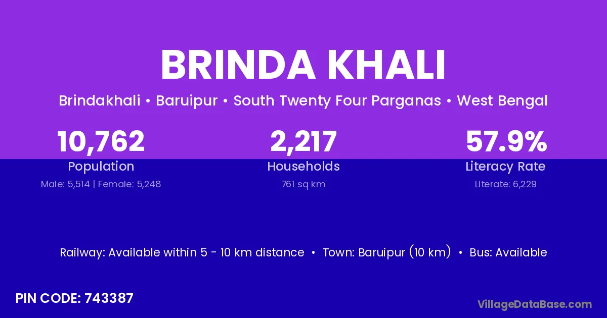 According to Census 2011 information, the village code of Brinda Khali village is 743387.