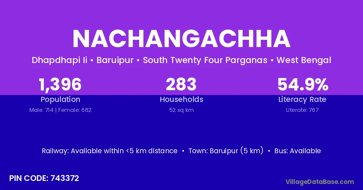 Baruipur (5 km) is the nearest town to Nachangachha village for major economic activities and is located approximately 5 km away.