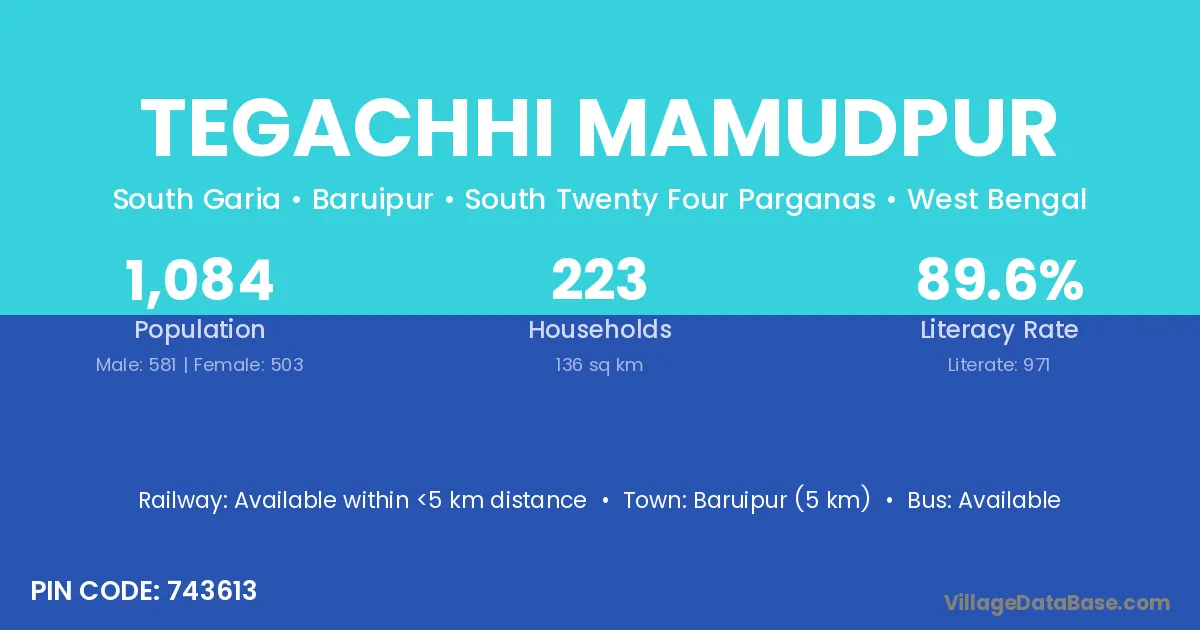 Baruipur (5 km) is the nearest town to Tegachhi Mamudpur village for major economic activities and is located approximately 5 km away.
