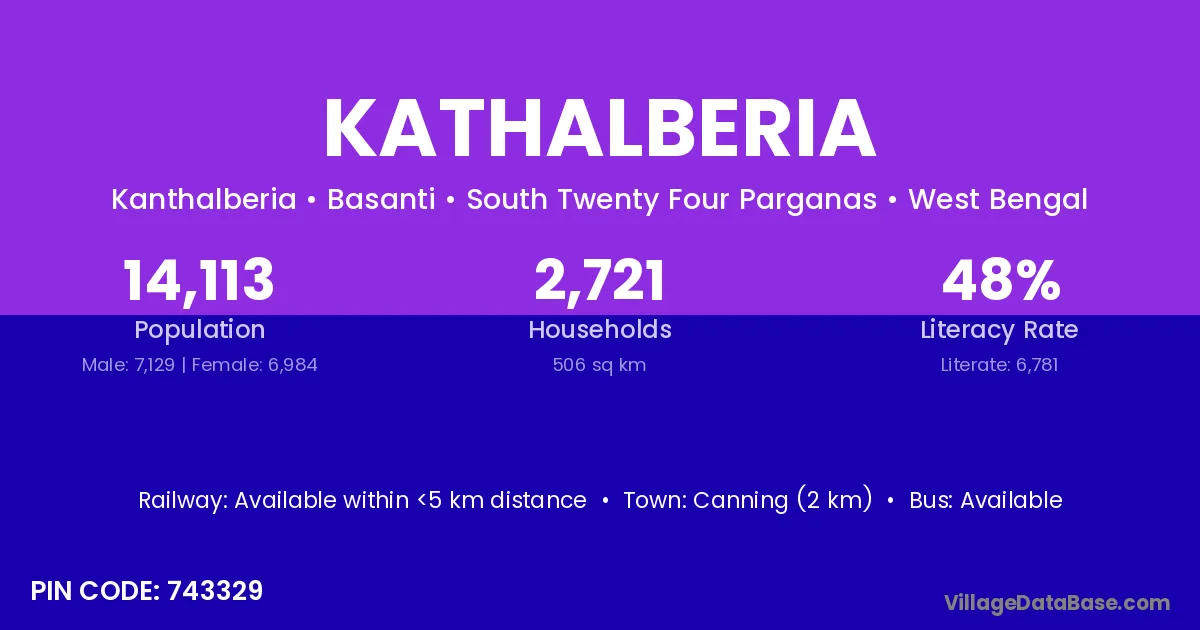 Canning (2 km) is the nearest town to Kathalberia village for major economic activities and is located approximately 2 km away.