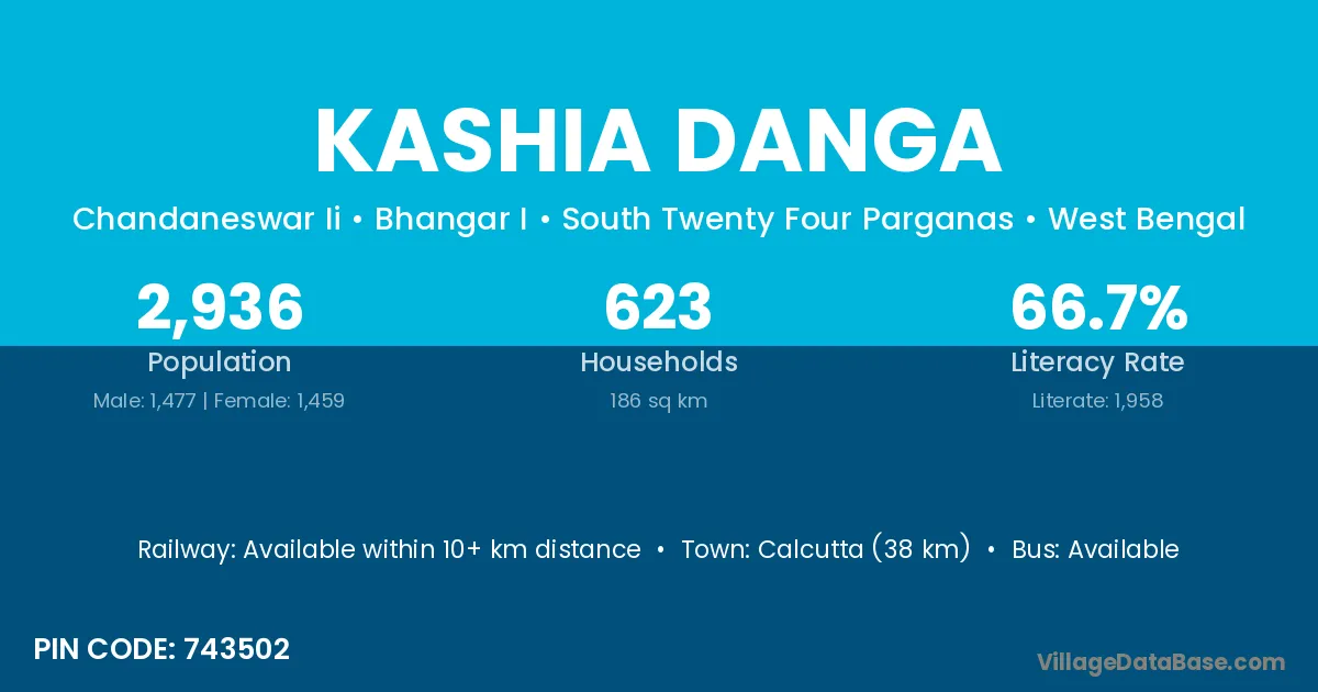 Kashia Danga village is located in the Bhangar I Subdivision of the South Twenty Four Parganas district in West Bengal.
