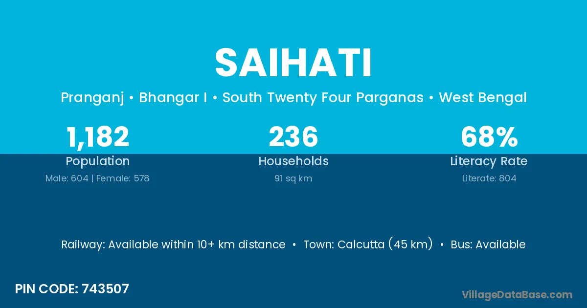 Calcutta (45 km) is the nearest town to Saihati village for major economic activities and is located approximately 45 km away.