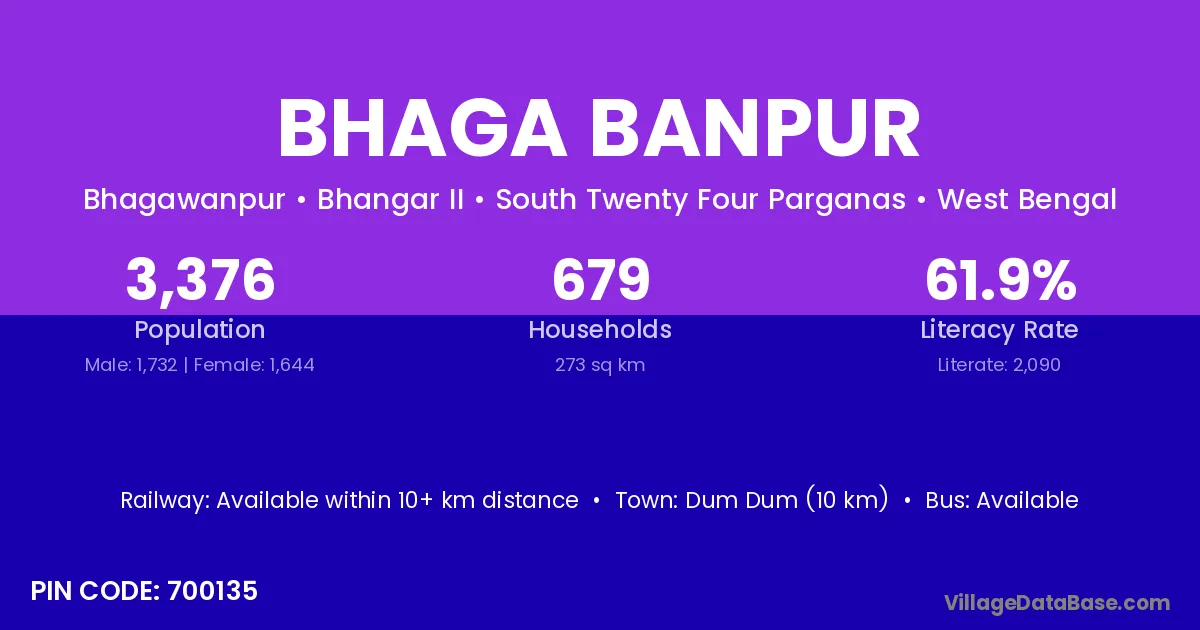 Dum Dum (10 km) is the nearest town to Bhaga Banpur village for major economic activities and is located approximately 10 km away.