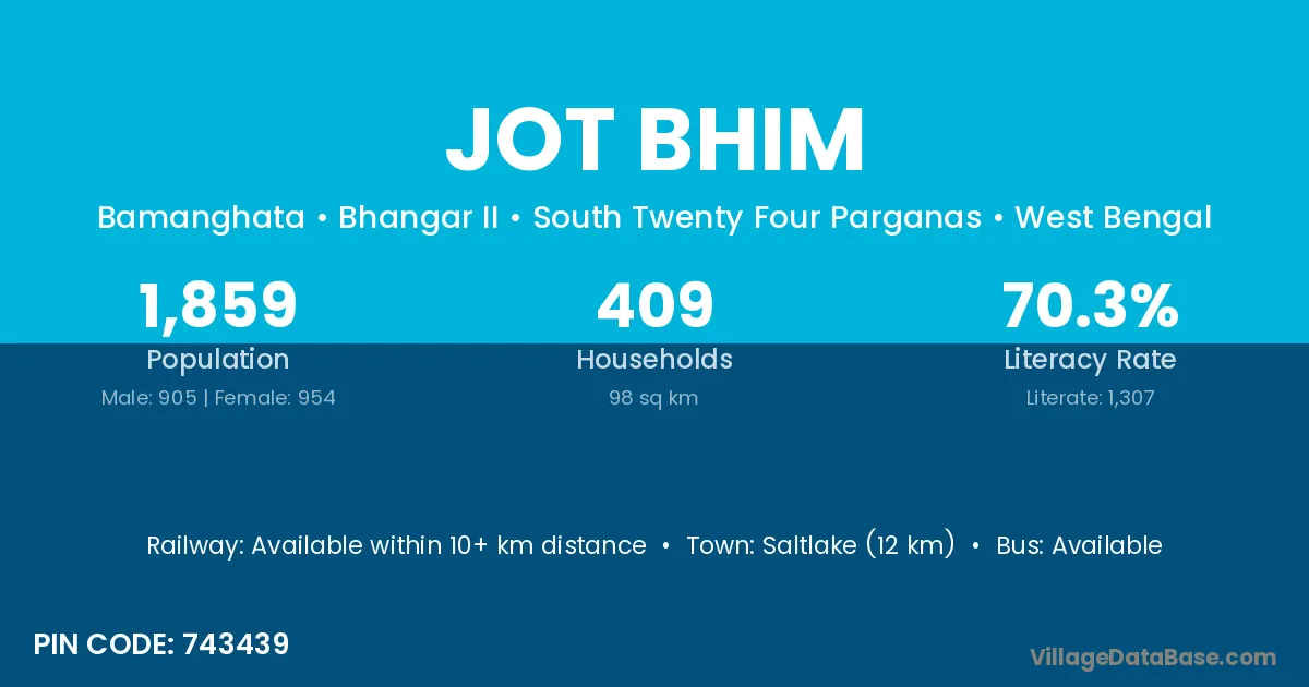 Jot Bhim village is located in the Bhangar II Subdivision of the South Twenty Four Parganas district in West Bengal.