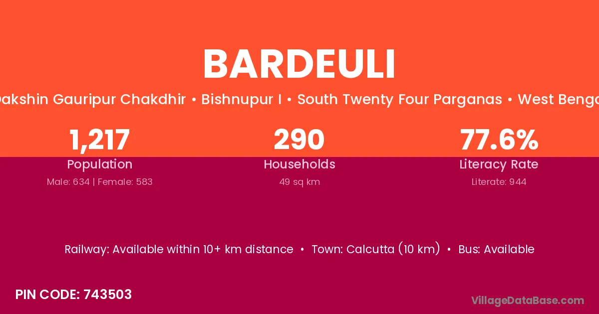 Calcutta (10 km) is the nearest town to Bardeuli village for major economic activities and is located approximately 10 km away.