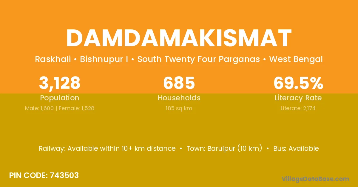 Baruipur (10 km) is the nearest town to Damdamakismat village for major economic activities and is located approximately 10 km away.