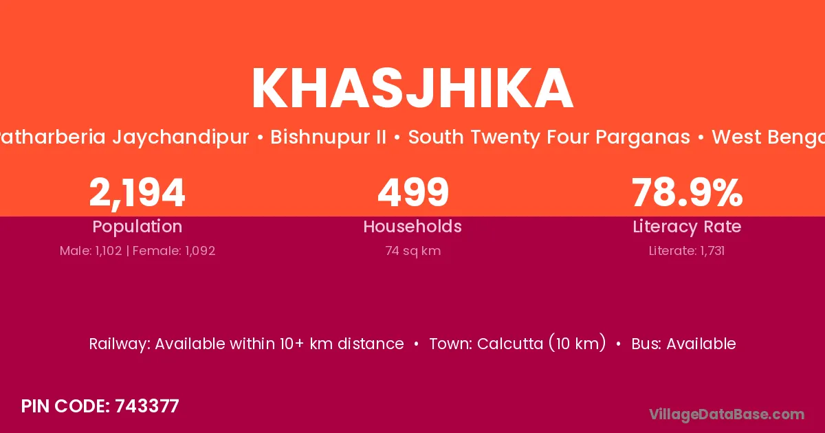 Calcutta (10 km) is the nearest town to Khasjhika village for major economic activities and is located approximately 10 km away.