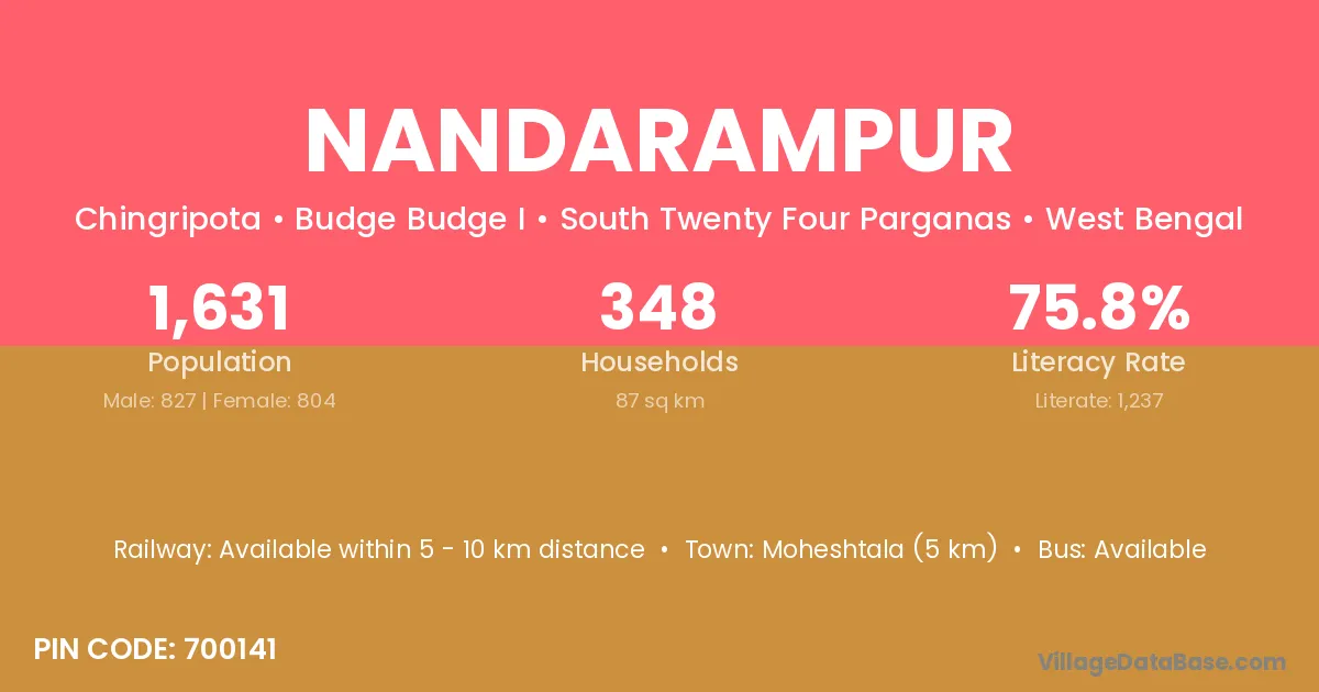 Moheshtala (5 km) is the nearest town to Nandarampur village for major economic activities and is located approximately 5 km away.