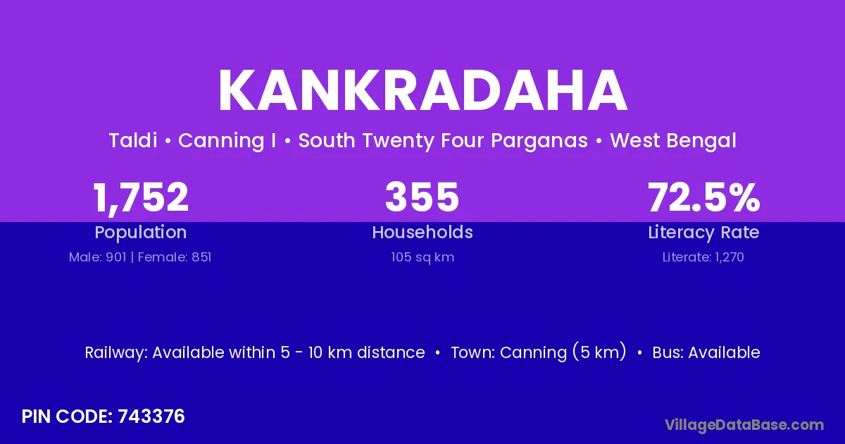 Canning (5 km) is the nearest town to Kankradaha village for major economic activities and is located approximately 5 km away.