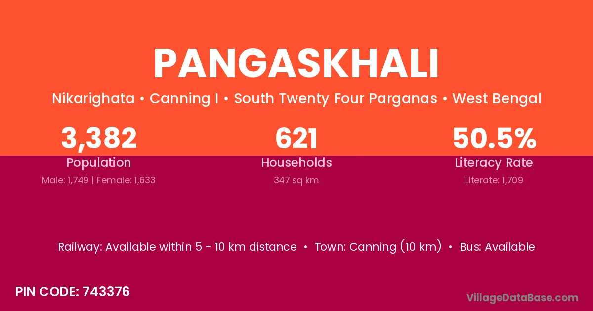 Pangaskhali village is located in the Canning I Subdivision of the South Twenty Four Parganas district in West Bengal.