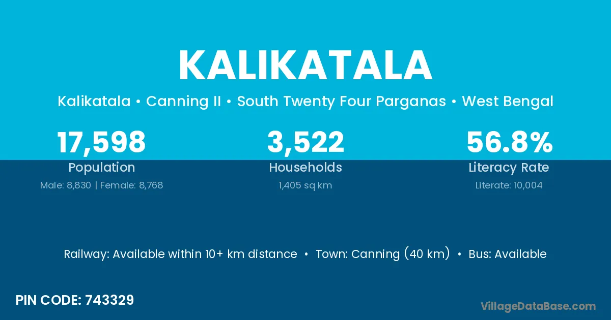 Canning (40 km) is the nearest town to Kalikatala village for major economic activities and is located approximately 40 km away.