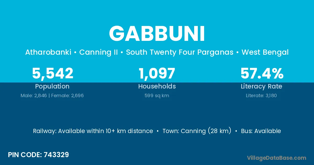 Canning (28 km) is the nearest town to Gabbuni village for major economic activities and is located approximately 28 km away.