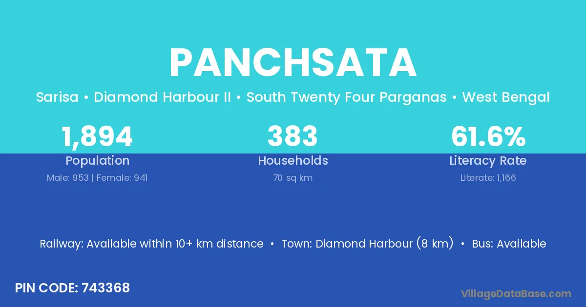 Diamond Harbour (8 km) is the nearest town to Panchsata village for major economic activities and is located approximately 8 km away.
