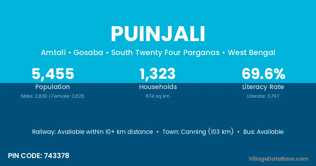 Canning (103 km) is the nearest town to Puinjali village for major economic activities and is located approximately 103 km away.