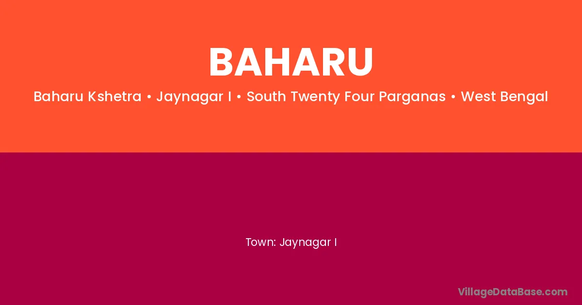 Baharu village is located in the Jaynagar I Subdivision of the South Twenty Four Parganas district in West Bengal.