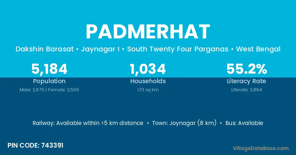 Joynagar (8 km) is the nearest town to Padmerhat village for major economic activities and is located approximately 8 km away.