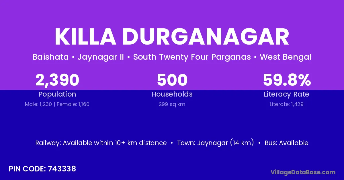 Killa Durganagar village is located in the Jaynagar II Subdivision of the South Twenty Four Parganas district in West Bengal .