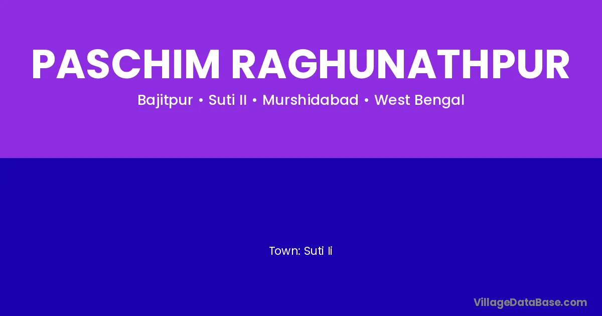 Jaynagar (14 km) is the nearest town to Paschim Raghunathpur village for major economic activities and is located approximately 14 km away.
