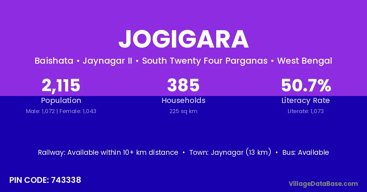 According to Census 2011 information, the village code of Jogigara village is 743338.
