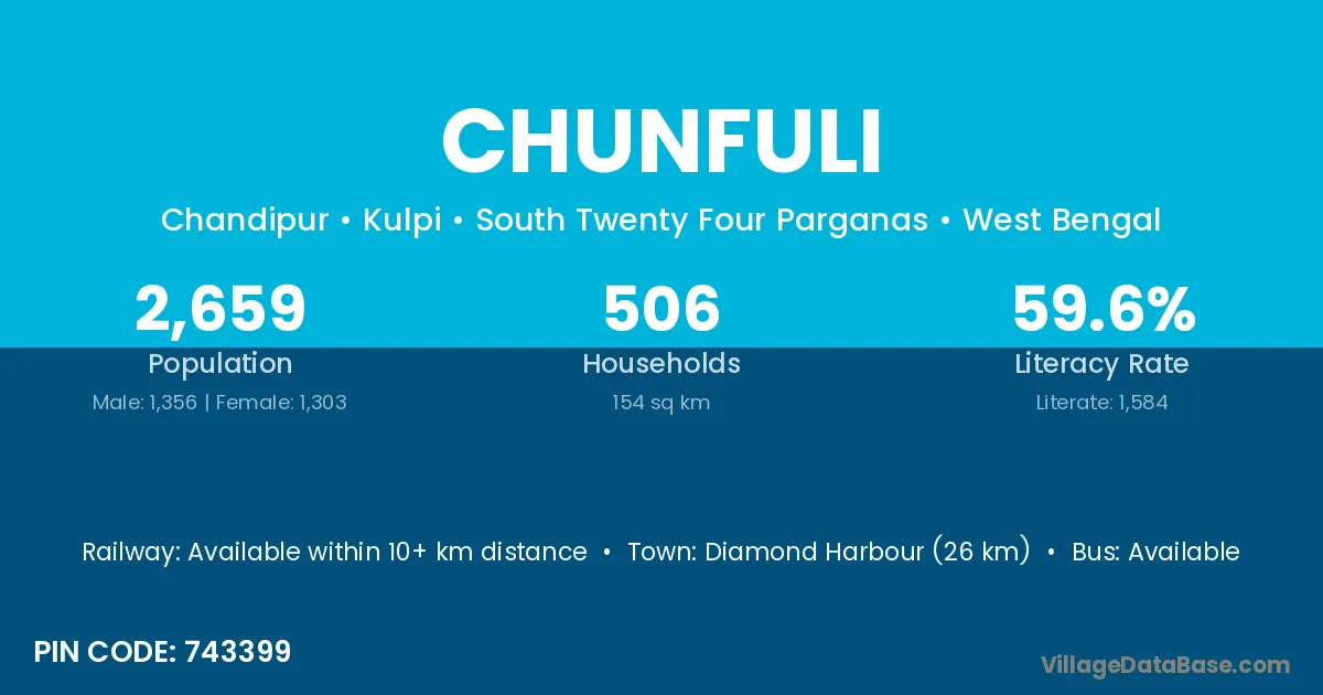 Chunfuli village is located in the Kulpi Subdivision of the South Twenty Four Parganas district in West Bengal.