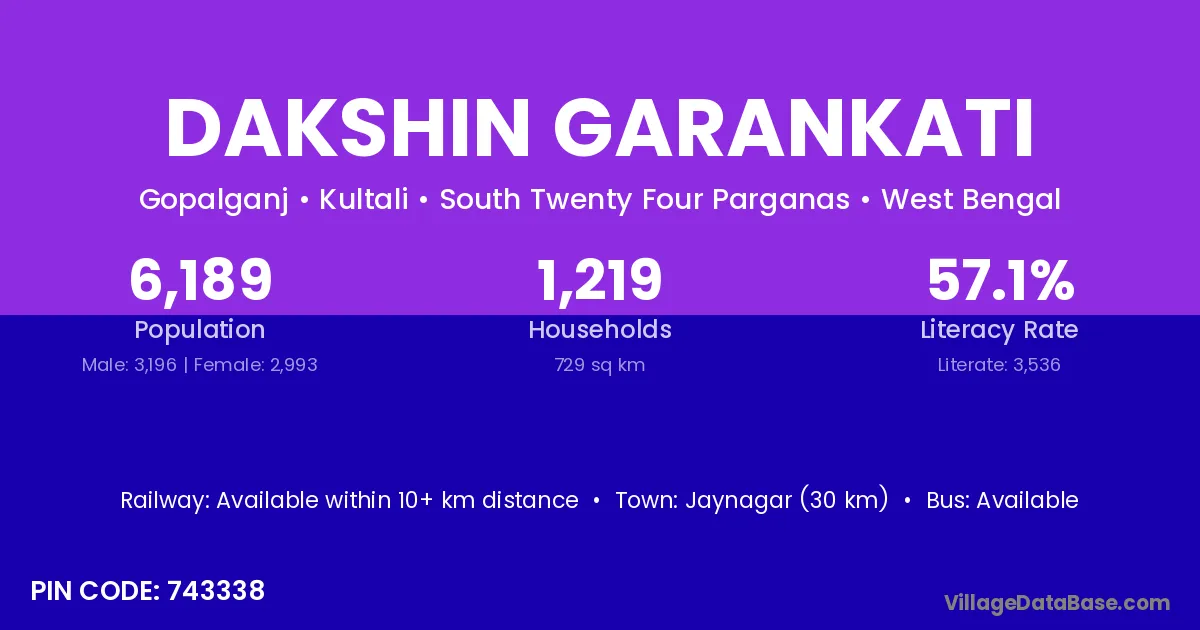 According to Census 2011 information, the village code of Dakshin Garankati village is 743338.