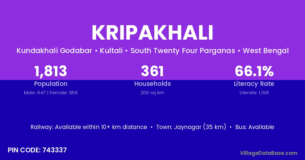 Kripakhali village is located in the Kultali Subdivision of the South Twenty Four Parganas district in West Bengal.