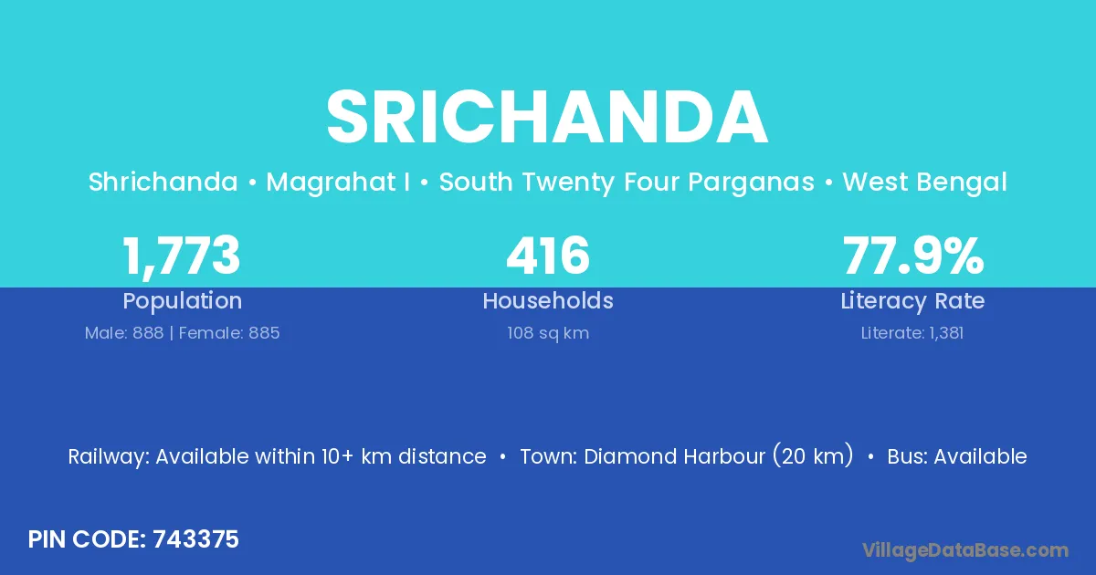 Diamond Harbour (20 km) is the nearest town to Srichanda village for major economic activities and is located approximately 20 km away.