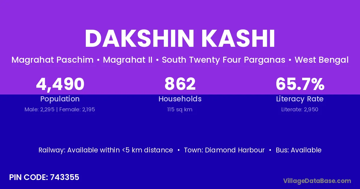 Diamond Harbour is the nearest town to Dakshin Kashi village for major economic activities