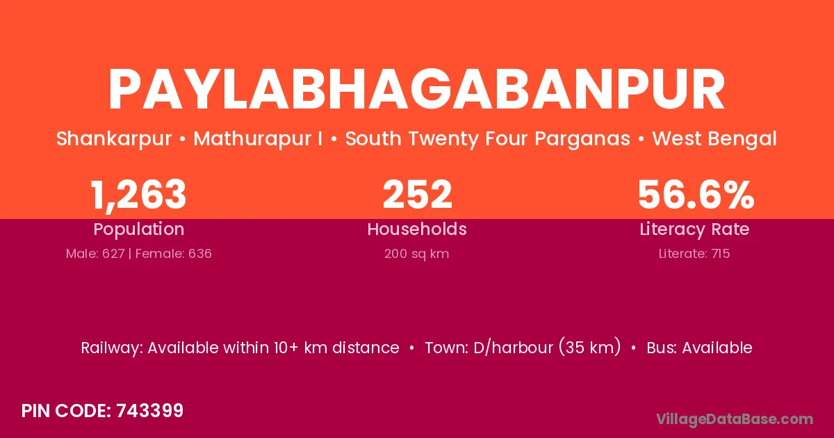 Paylabhagabanpur village has a total population of 1,263 people, of which 627 are males and 636 are females.