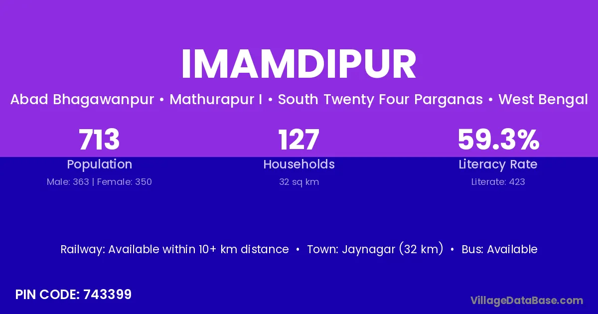 According to Census 2011 information, the village code of Imamdipur village is 743399.