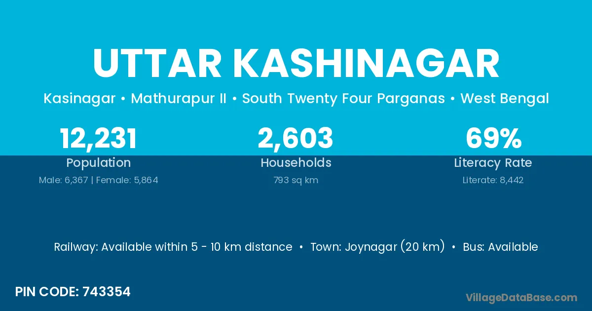 Uttar Kashinagar village has a total population of 12,231 people, of which 6,367 are males and 5,864 are females.