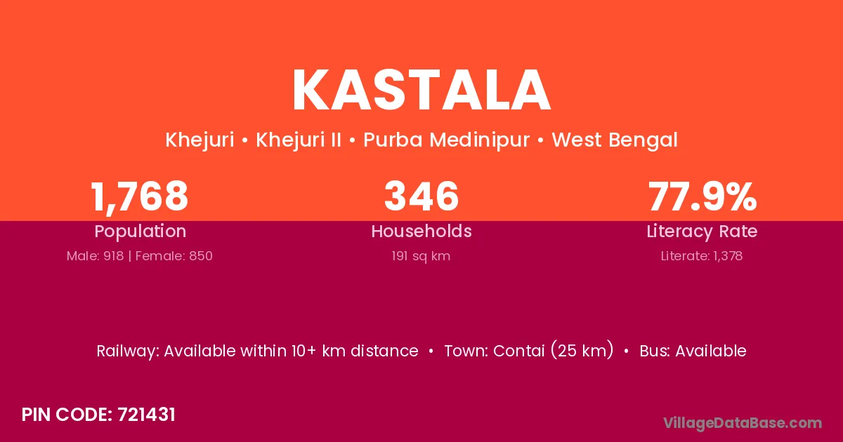 According to Census 2011 information, the village code of Kastala village is 743373.
