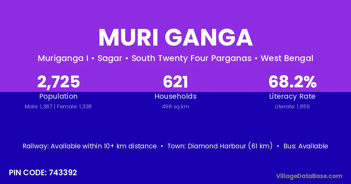 Diamond Harbour (61 km) is the nearest town to Muri Ganga village for major economic activities and is located approximately 61 km away.